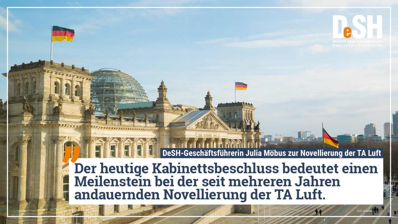 Heute hat das Bundeskabinett die Novelle der Technischen Anleitung zur Reinhaltung der Luft (TA Luft) beschlossen. Nach über vierjährigen Beratungen findet der Novellierungsprozess auf Bundesebene nun einen vorläufigen Abschluss und die Bundesländer sind am Zug. Für den DeSH, der sich über Jahre in die Beratungen eingebracht hatte, bedeutet der Kabinettsbeschluss nun einen angemessenen Ausgleich zwischen Immissionsschutz und Umsetzbarkeit in der Praxis.