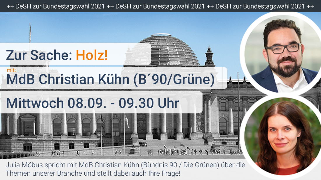 Er ist Obmann und Sprecher für Bau- und Wohnungspolitik der Fraktion Bündnis 90 / Die Grünen und Mitglied im Ausschuss für Bauen, Wohnen, Stadtentwicklung und Kommunen. Hier können Sie sich für die Veranstaltung anmelden, live dabei sein und Ihre Fragen an Herrn Kühn, MdB stellen. Sie können gern auch vorab Ihre Fragen stellen an: julia.moebus@saegeindustrie.de