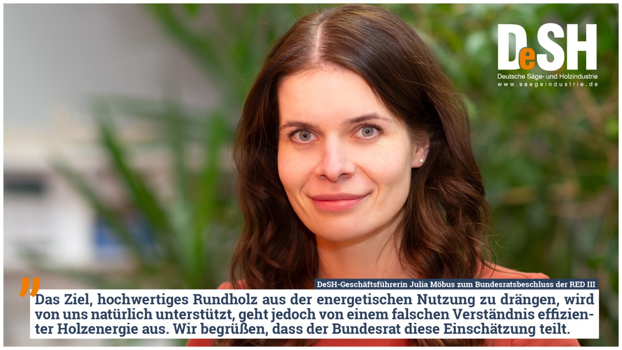 Der von der EU vorgesehenen Ausweitung der Nachhaltigkeitskriterien für Feuerungsanlagen mit festen Biomasse-Brennstoffen steht der Bundesrat ebenfalls kritisch gegenüber. Er fordert die zukünftige Herabsetzung bei Anlagen mit einer Feuerungswärmeleistung von 10 MW zu begrenzen. „Wir freuen uns, dass die Anliegen von Forst und Holz erkannt worden sind und begrüßen die Initiative des Bundesrates. Holzenergie spielt eine entscheidende Rolle für das Gelingen der Energiewende und bei der Dekarbonisierung der Industrie auf dem Weg zur Klimaneutralität. Wir hoffen, dass in den Verhandlungen der kommenden Monate diese Problematiken erkannt und die Vorschläge entsprechend umgesetzt werden“, betont Möbus abschließend.