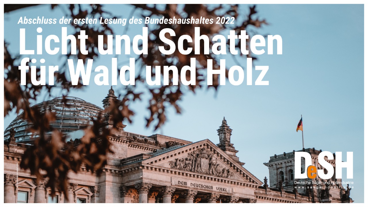 Aus dem heutigen Abschluss der ersten Lesung des Bundeshaushalts 2022 zieht der Deutsche Säge- und Holzindustrie Bundesverband e.V. (DeSH) eine gemischte Bilanz. Während die geplanten Mittel für den Energie- und Klimafonds begrüßt werden, sieht der Verband in der zukünftigen Finanzierung von Wald und Holz eine begrenzte Wirkung – Für die nachhaltige Transformation unserer Wirtschaft braucht es deutlichere Signale.