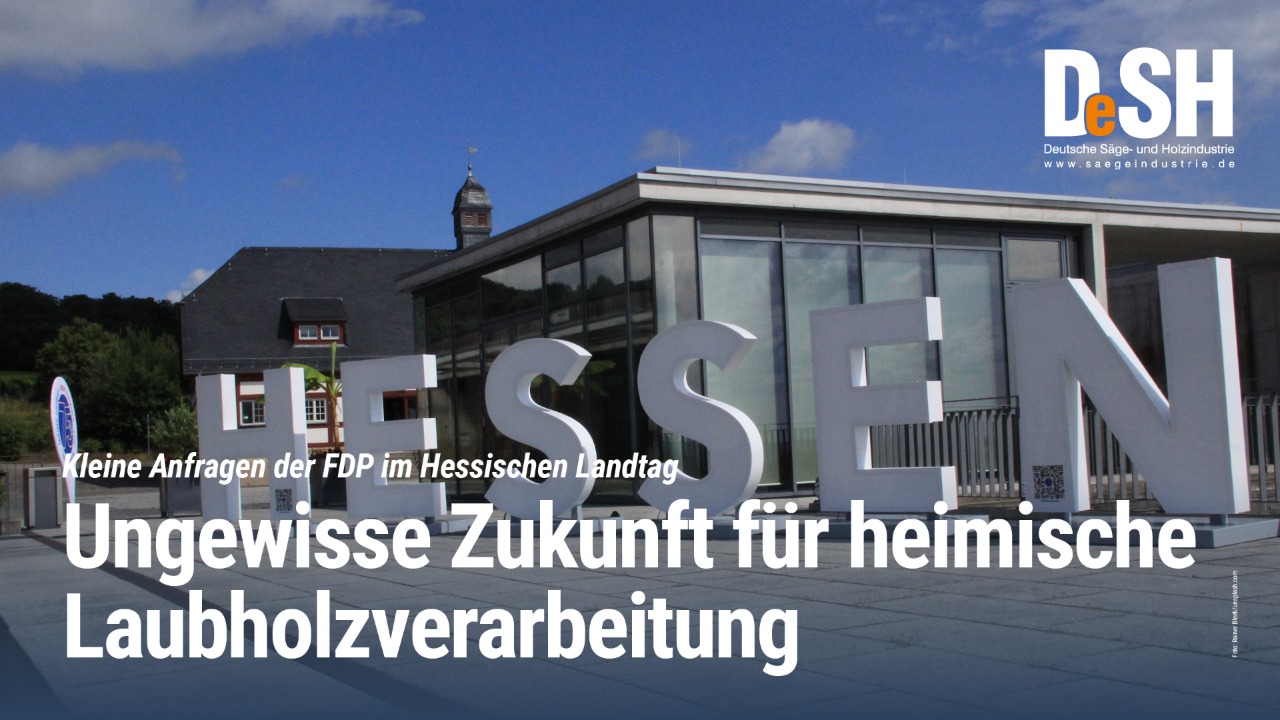 Die Zukunft des Clusters Forst und Holz in Hessen stand insbesondere angesichts der ausgeweiteten Nutzungsverbote in den hessischen Laubwäldern im Mittelpunkt von drei kleinen Anfragen der FDP-Fraktion im Hessischen Landtag. Die nun vorliegende Antwort der Landesregierung lässt jedoch weiterhin viele Fragen offen. Vor diesem Hintergrund kritisiert der Deutsche Säge- und Holzindustrie Bundesverband e.V. (DeSH) die mangelnde Begründung zur Aufrechterhaltung der Einschlagsbeschränkung und mahnt eine schnelle Lösung und eine Perspektive für die Zukunft der Laubholzverarbeitung in Hessen an.