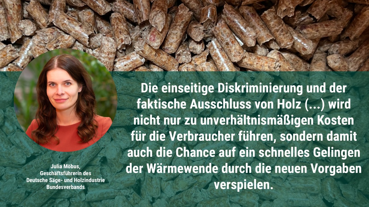 Vorgesehen ist, dass Biomasseheizungen im Neubau nicht zur Erfüllung des 65 Prozent-Ziels zulässig sind. Für den Heizungstausch im Bestand, in dem die Holzwärme eine zentrale Rolle spielt, soll bei Biomasseheizungen künftig eine Kombinationspflicht mit Solar oder Photovoltaik und zudem eine Pflicht für staubmindernde Maßnahmen gelten. „Die Kombinationspflichten im Bestand drohen die Eigentümer durch zusätzliche Kosten unnötig zu belasten und bremsen den Ausbau der erneuerbaren Wärme weiter aus. Doch gerade bei älteren Gebäuden ist der Sanierungsstau groß. Der Einsatz von Biomasseheizungen bleibt hier oftmals die einzig praktikable, bezahlbare wie auch sinnvolle Lösung“, so Möbus. „Gleichzeitig wird ein kategorischer Ausschluss von Biomasseheizungen, und damit auch hocheffizienter und emissionsarmer Pelletheizungen, der Heterogenität möglicher Gebäudekonstellationen im Neubau nicht gerecht. Zukunftsfähigen Wärmekonzepten wird eine Absage erteilt. So bleibt die nachhaltige Holzenergie auch für die zentrale Versorgung von Gebäudenetzen als Erfüllungsoption ausgeschlossen.“ Möbus betont: „Es ist noch ein langer Weg bis zu 50 Prozent erneuerbarer Wärme im Jahr 2030. Aktuell liegt ihr Anteil bei gerade einmal 16,5 Prozent. Um das Ziel schnellstmöglich zu erreichen, sollten alle zur Verfügung stehenden erneuerbaren Energieträger konsequent genutzt werden. Doch die angekündigte Technologieoffenheit erweist sich als Rückschritt, wenn die Wahlfreiheit der Eigentümer im Ergebnis eingeschränkt wird. Sollen die Bürgerinnen und Bürger die Wärmewende mittragen, sind vielfältige und bezahlbare Maßnahmen notwendig.“