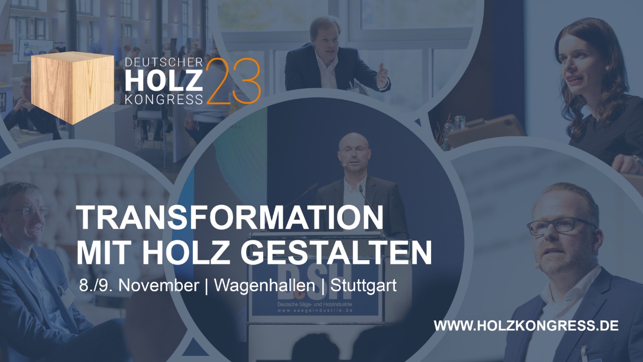 Am 8. und 9. November 2023 veranstaltet der Deutsche Säge- und Holzindustrie Bundesverband e.V. (DeSH) den alljährlichen Deutschen Holzkongress in Stuttgart. Im Fokus des diesjährigen Branchentreffens stehen die Veränderungen unserer Zeit und ihre Auswirkungen auf Politik, Gesellschaft und Wirtschaft. Mit prominenten Gastbeiträgen beleuchtet die Veranstaltung die Chancen dieses Transformationsprozesses und zeigt, wie sich der Wandel mit Holz gestalten lässt.