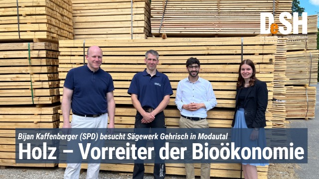 Bijan Kaffenberger (SPD) besucht Sägewerk Gehrisch in ModautalHolz – Vorreiter der BioökonomieAm 18. Mai 2022 besuchte Bijan Kaffenberger, direkt gewählter Abgeordneter im Hessischen Landtag, das Sägewerk Gehrisch aus seinem Wahlkreis in Modautal. Bei einem Rundgang machte