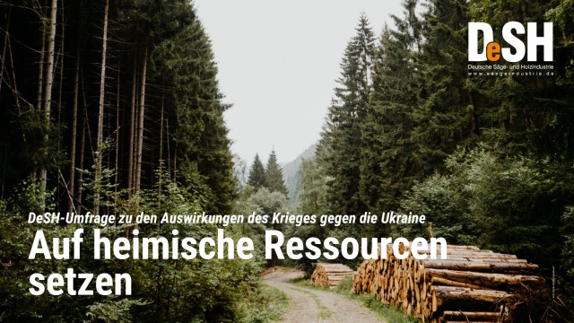 Auswirkungen des Krieges gegen die Ukraine Auf heimische Ressourcen setzen Mit einer Umfrage hat der Deutsche Säge- und Holzindustrie Bundesverband e.V. (DeSH) seine Mitgliedsbetriebe über die aktuellen und zu erwartenden Auswirkungen des Krieges in der Ukraine auf die