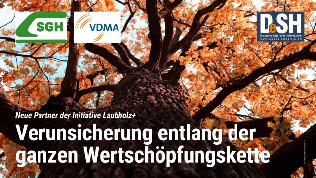 Neue Partner der Initiative Laubholz+ Verunsicherung entlang der ganzen WertschöpfungsketteDie Initiative Laubholz+ des Deutschen Säge- und Holzindustrie Bundesverbands e.V. (DeSH) erhält weitere Unterstützung aus der Wertschöpfungskette der Laubholzverarbeitung. Neben