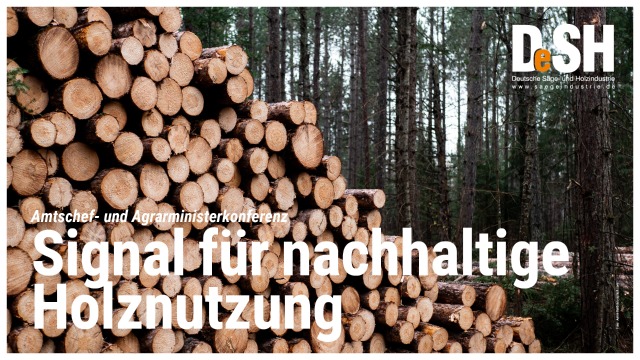 Amtschef- und AgrarministerkonferenzSignal für nachhaltige HolznutzungAuf der seit gestern tagenden Amtschef- und Agrarministerkonferenz (ACK/AMK) wurden neben der nachhaltigen Energieerzeugung aus Holz auch die Auswirkungen des Klimaschutzgesetzes auf den forstbasierten Sektor und davon