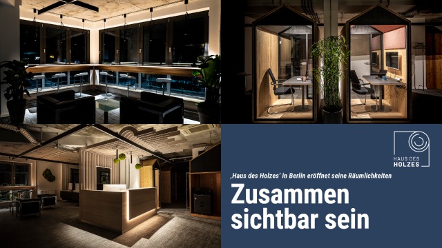 ‚Haus des Holzes‘ in Berlin eröffnet RäumlichkeitenZusammen sichtbar seinStart eines neuen Zentrums für die vernetzte und verbandsübergreifende Zusammenarbeit: Im ‚Haus des Holzes‘ im politischen Zentrum Berlins haben sieben Verbände der