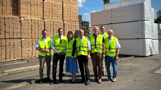Bundestagsabgeordneter Daniel Föst (FDP) besucht Binderholz Kösching GmbH. Die klimafreundliche Bauwende mit Holz stand im Mittelpunkt des gestrigen Besuchs des Politikers in Kösching.