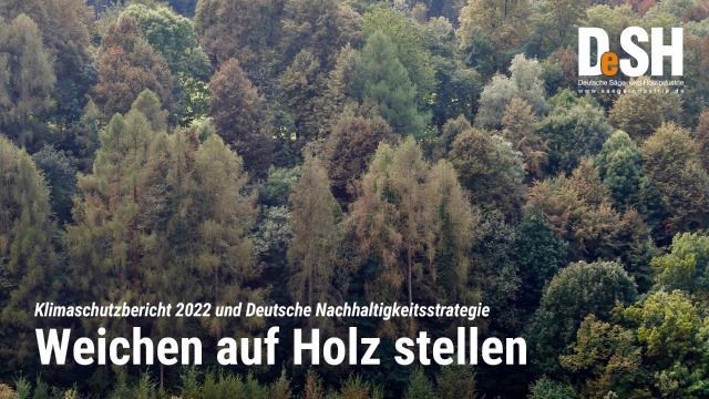 Klimaschutzbericht 2022 und Deutsche NachhaltigkeitsstrategieWeichen auf Holz stellenNachdem das Bundeskabinett am Mittwoch den Klimaschutzbericht 2022 beschlossen und der Deutsche Bundestag seine gestrige Generaldebatte der Nachhaltigkeitsstrategie widmete, unterstreicht der Deutsche Säge- und